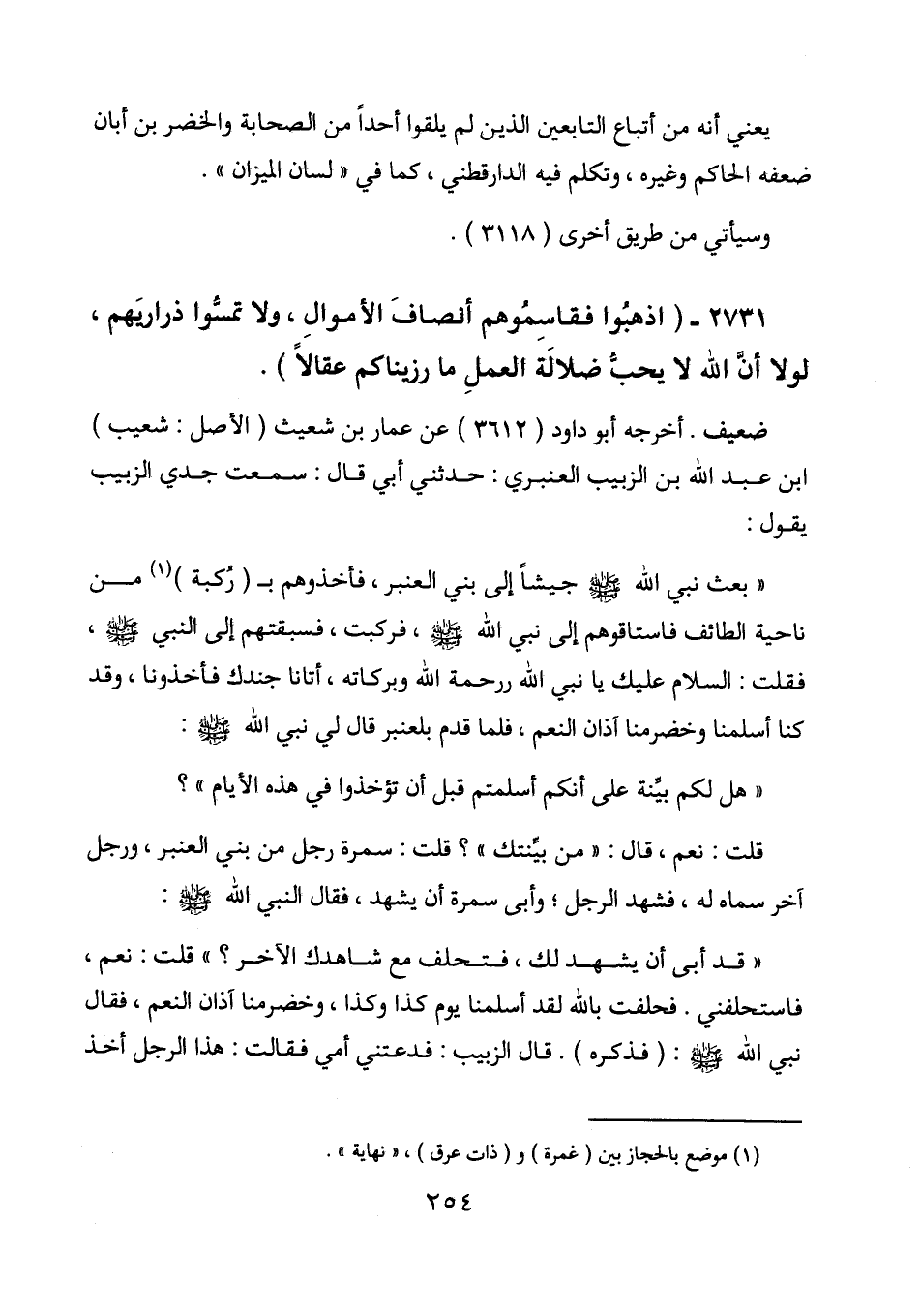 2731 - (اذهبوا فقاسموهم أنصاف الأموال، ولا تمسوا ذراريهم، لولا أن الله لا يحب ضلالة العمل ما رزيناكم عقالا) .