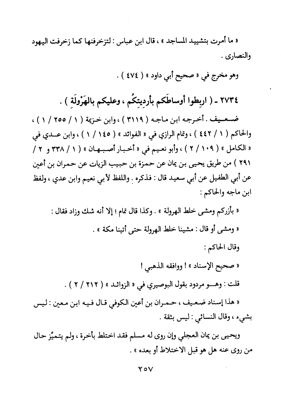 2734 - (اربطوا أوساطكم بأرديتكم، وعليكم بالهرولة) .