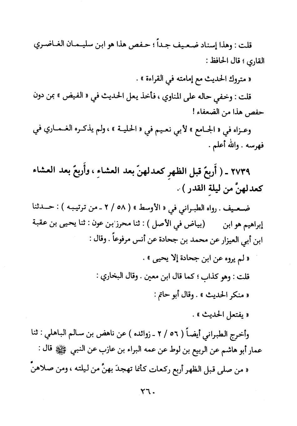 2739 - (أربع قبل الظهر كعدلهن بعد العشاء، وأربع بعد العشاء كعدلهن من ليلة القدر) .