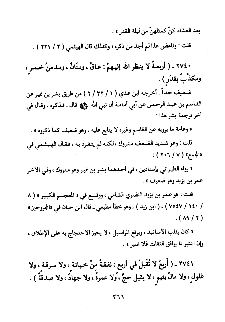 2740 - (أربعة لا ينظر الله إليهم: عاق، ومنان، ومدمن خمر، ومكذب بقدر) .