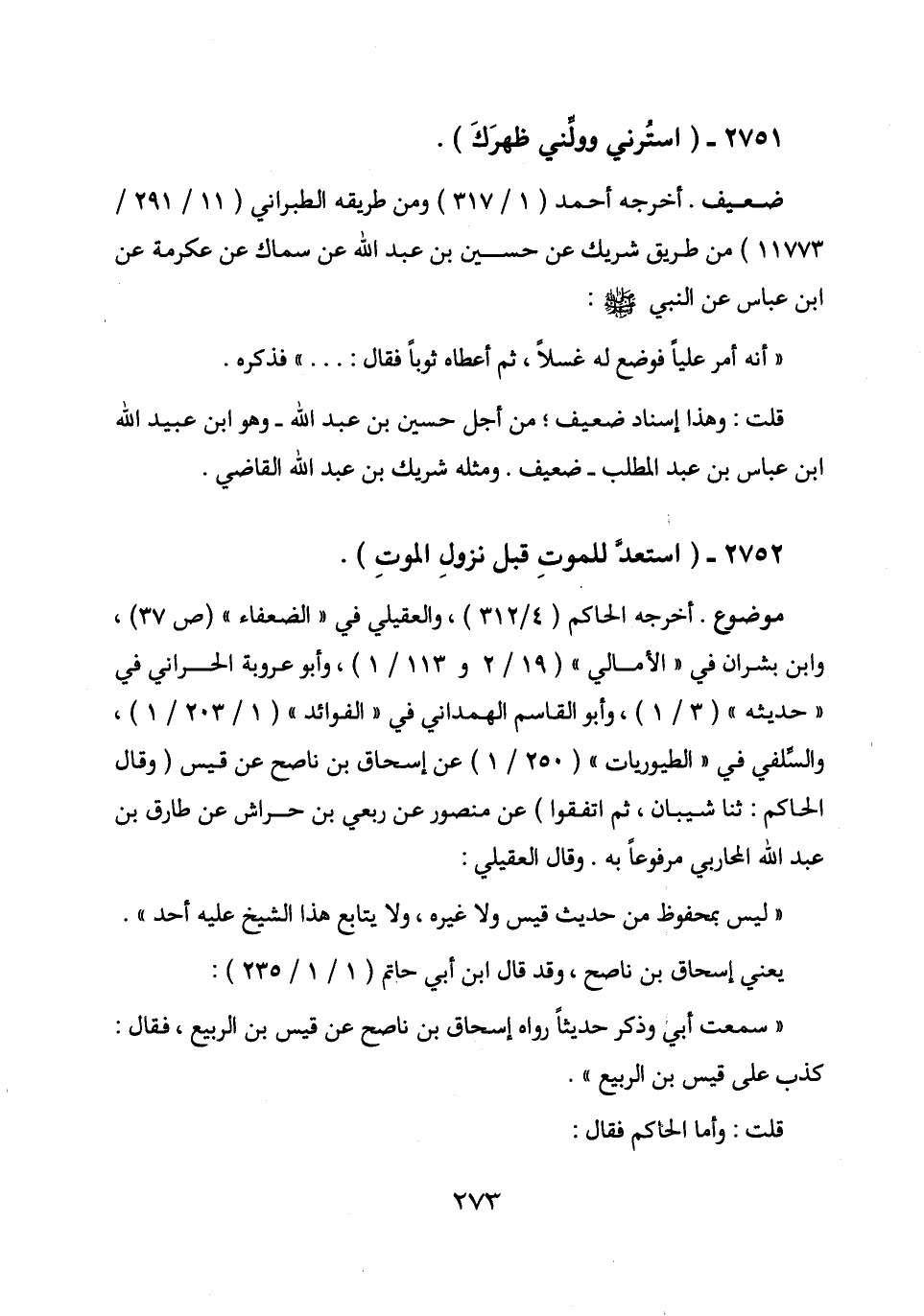 اخرجه الحاكم (4/312) ، والعقيلي في " الضعفاء " (ص 37) ، وابن بشران في " الأمالي " (19/2 و 113/1) ، وأبو عروبة الحراني في " حديثه " (3/1) ، وأبو القاسم الهمداني في " الفوائد " (1/203/1) ، والسلفي في " الطيوريات " (250/1) عن إسحاق بن ناصح عن قيس (وقال الحاكم: حدثنا شيبان، ثم اتفقوا) عن منصور عن ربعي بن حراش عن طارق بن عبد الله المحاربي مرفوعا به. وقال العقيلي: