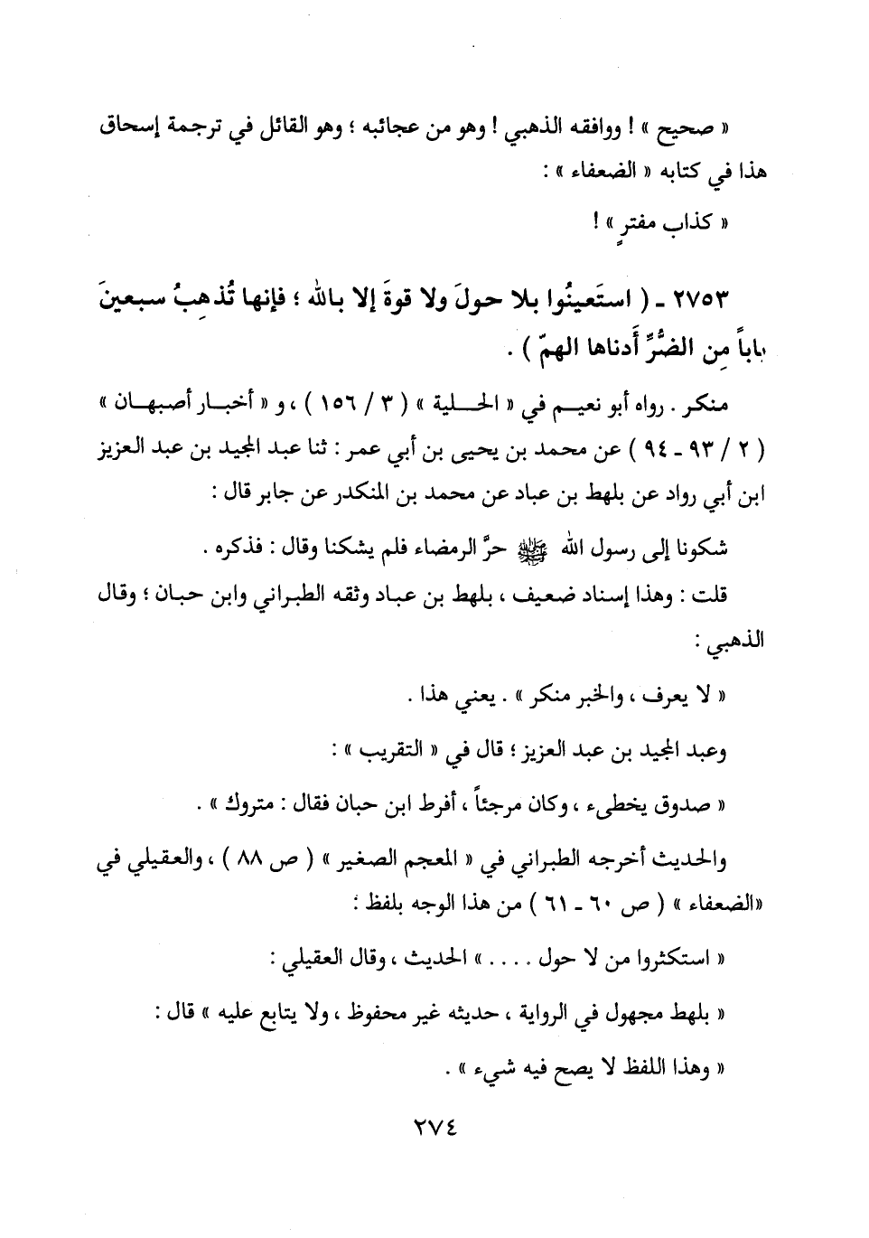 " استكثروا من لا حول.... " الحديث، وقال العقيلي: