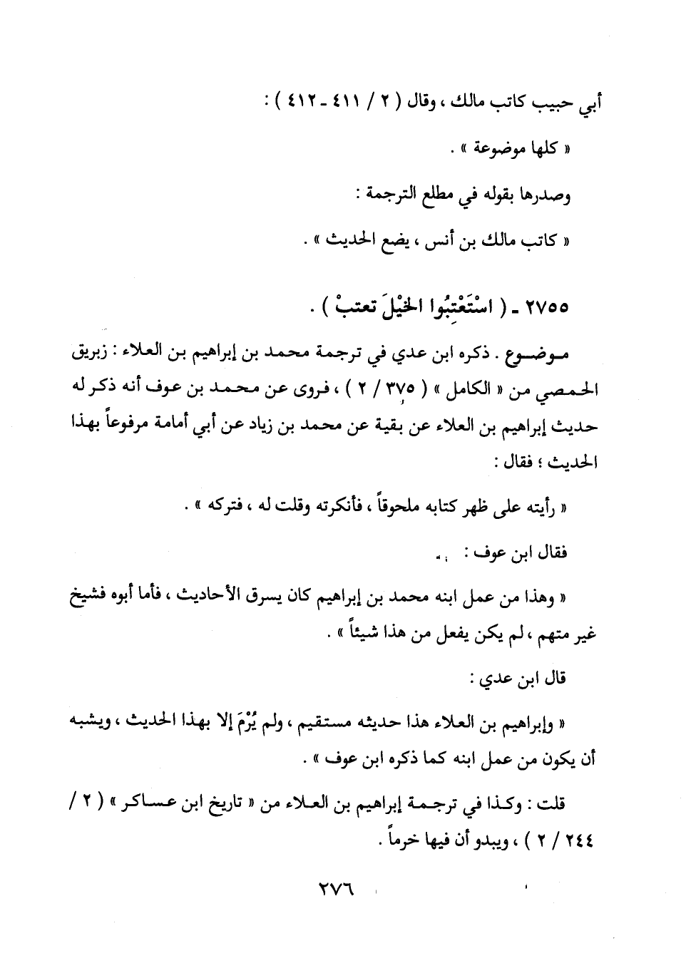 " رأيته على ظهر كتابه ملحوقا، فأنكرته وقلت له، فتركه ".
