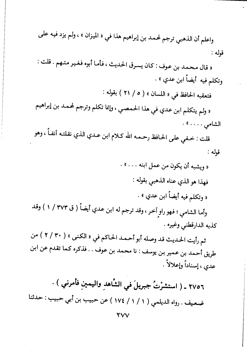 " ولم يتكلم ابن عدي في هذا الحمصي، وإنما تكلم وترجم لمحمد بن إبراهيم الشامي.... ".