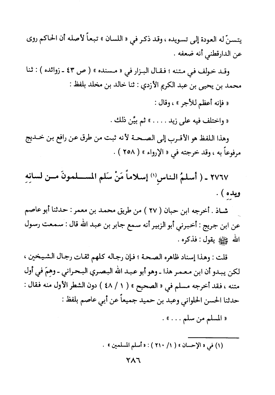 (1) في " الإحسان " (1 / 210) : " أسلم المسلمين "