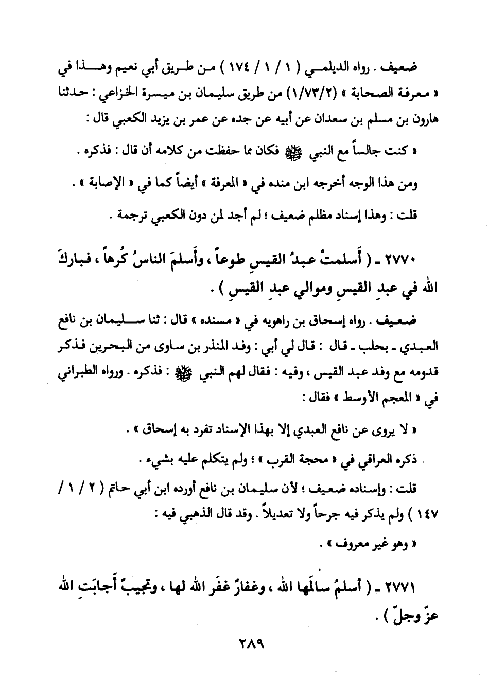2770 - (أسلمت عبد القيس طوعا، وأسلم الناس كرها، فبارك الله في عبد القيس وموالي عبد القيس) .