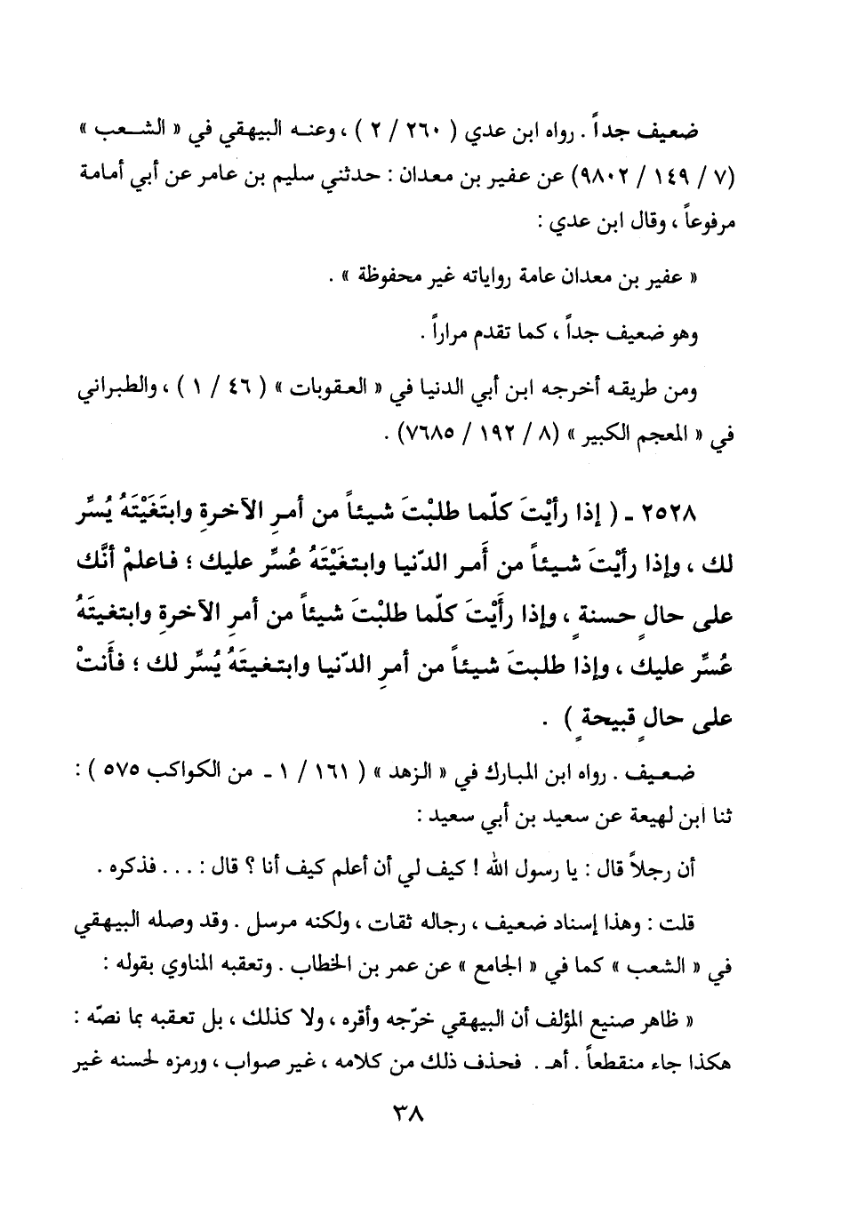 2528 - (إذا رأيت كلما طلبت شيئا من أمر الآخرة وابتغيته يسر لك، وإذا رأيت شيئا من أمر الدنيا وابتغيته عسر عليك؛ فاعلم أنك على حال حسنة، وإذا رأيت كلما طلبت شيئا من الآخرة وابتغيته عسر عليك، وإذا طلبت شيئا من أمر الدنيا وابتغيته يسر لك؛ فأنت على حال قبيحة) .