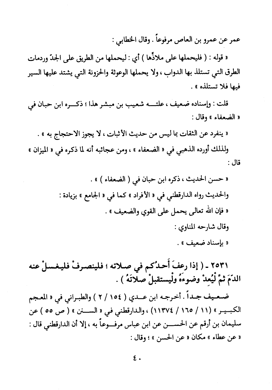 2531 - (إذا رعف أحدكم في صلاته؛ فلينصرف فليغسل عنه الدم ثم ليعد وضوءه وليستقبل صلاته) .