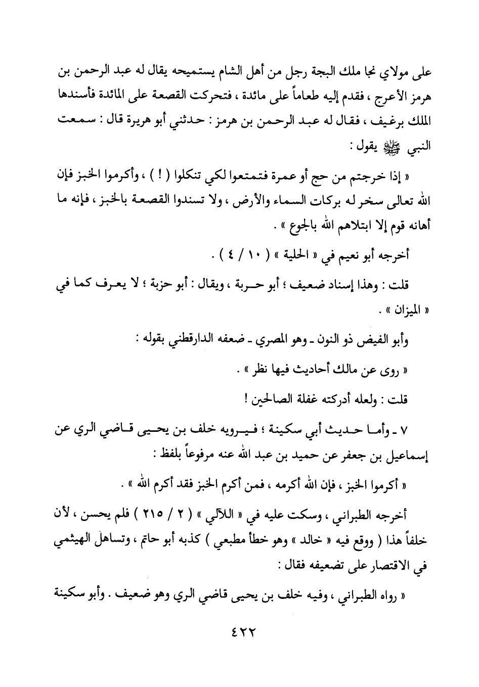 " أكرموا الخبز، فإن الله أكرمه، فمن أكرم الخبز فقد أكرم الله ".