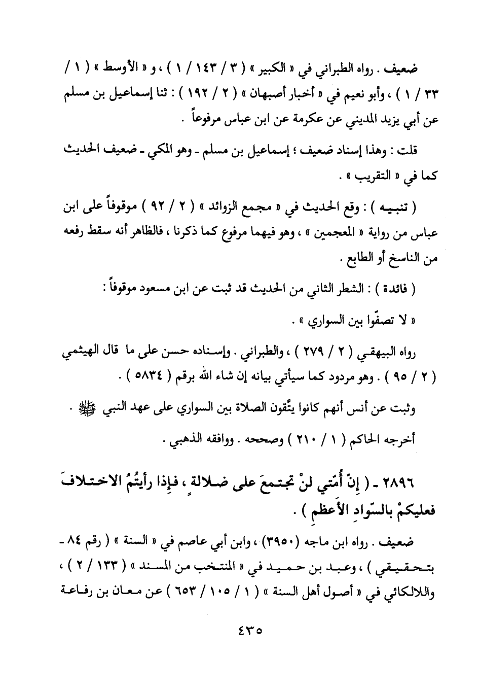 2896 - (إن أمتي لن تجتمع على ضلالة، فإذا رأيتم الاختلاف فعليكم بالسواد الأعظم) .