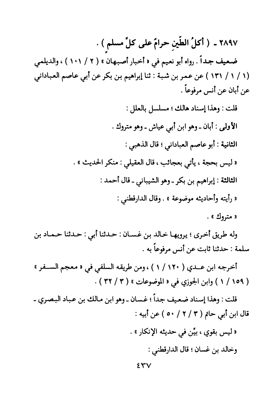 قلت: وهذا إسناد ضعيف جدا؛ غسان - وهو ابن مالك بن عباد البصري - قال ابن أبي حاتم (3/2/50) عن أبيه: