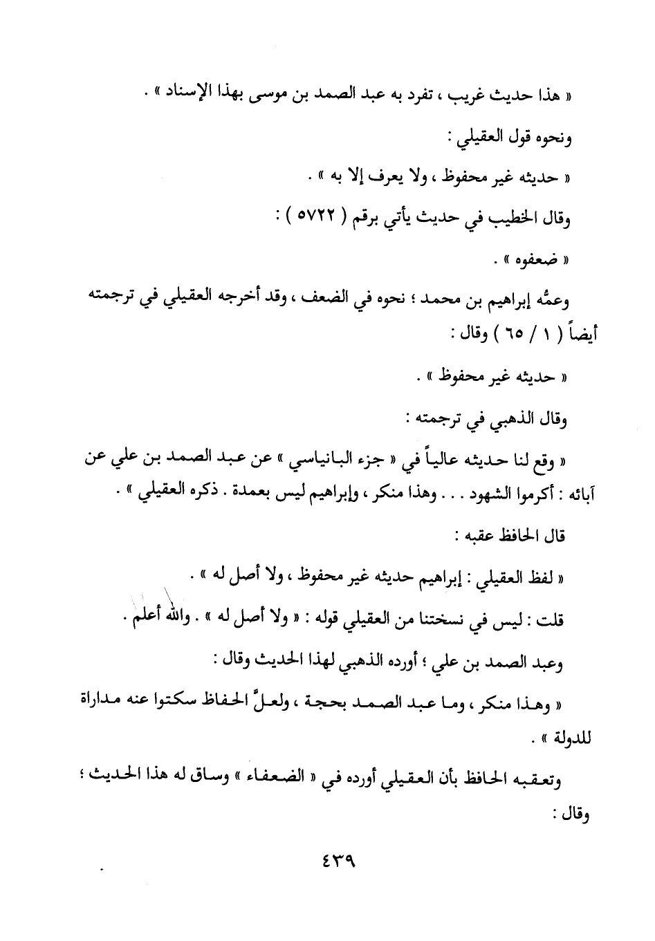 " لفظ العقيلي: إبراهيم حديثه غير محفوظ، ولا أصل له ".