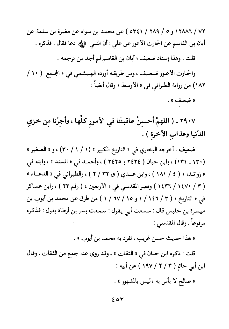 72/12886 و 5/289/5341) عن محمد بن سواء عن مغيرة بن سلمة عن أبان بن القاسم عن الحارث الأعور عن علي: أن النبي صلى الله عليه وسلم دعا فقال: فذكره.