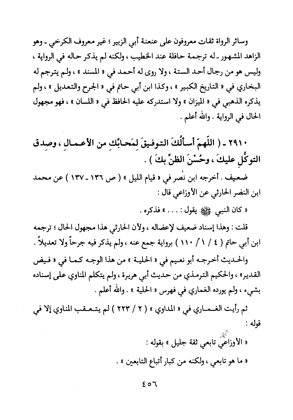 " الأوزاعي تابعي ثقة جليل " بقوله: