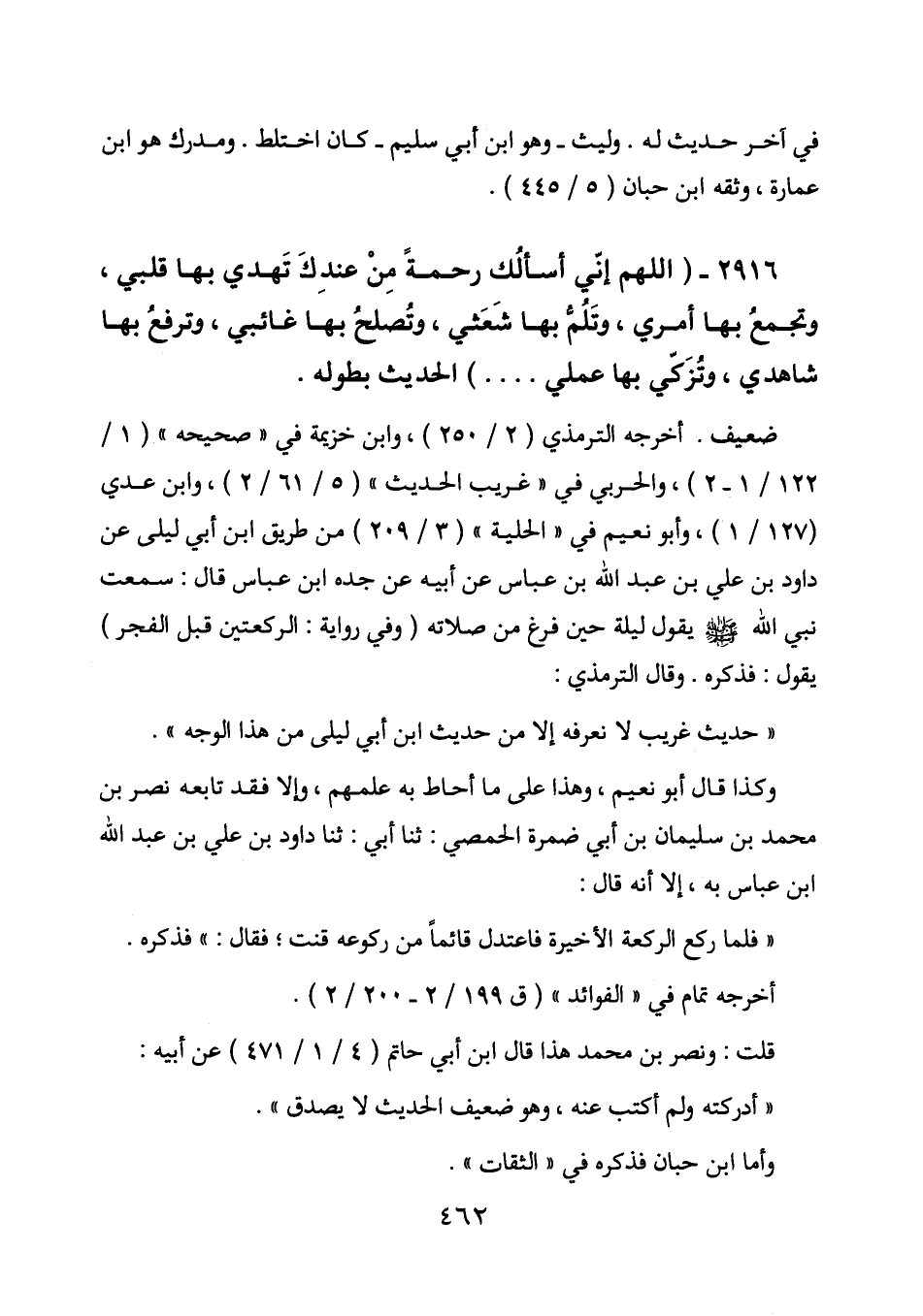 2916 - (اللهم إني أسألك رحمة من عندك تهدي بها قلبي، وتجمع بها أمري، وتلم بها شعثي، وتصلح بها غائبي، وترفع بها شاهدي، وتزكي بها عملي....) الحديث بطوله.