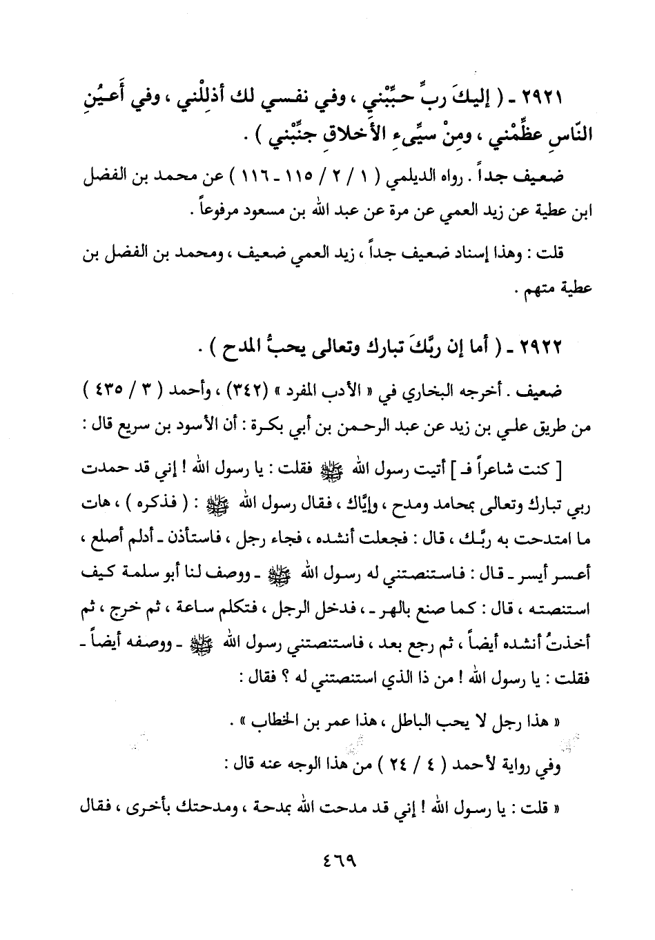 2922 - (أما إن ربك تبارك وتعالى يحب المدح) .