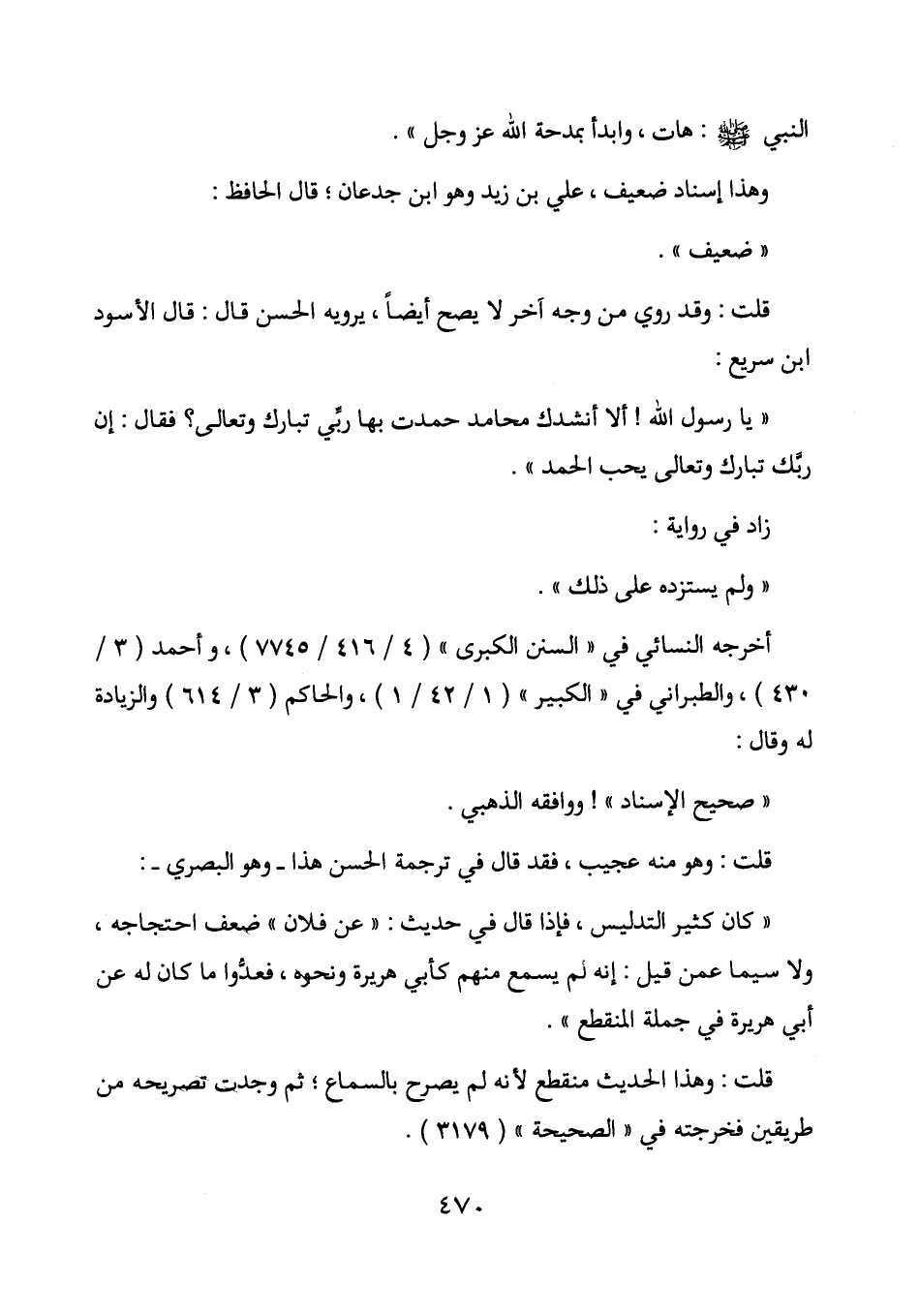 " يا رسول الله! ألا أنشدك محامد حمدت بها ربي تبارك وتعالى؟ فقال: إن ربك تبارك وتعالى يحب الحمد ".