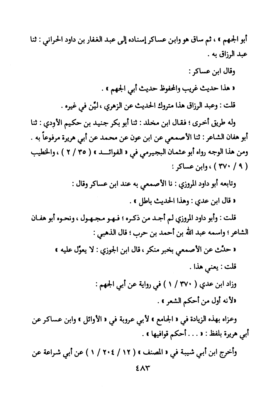 وزاد ابن عدي (370/1) في رواية عن أبي الجهم: