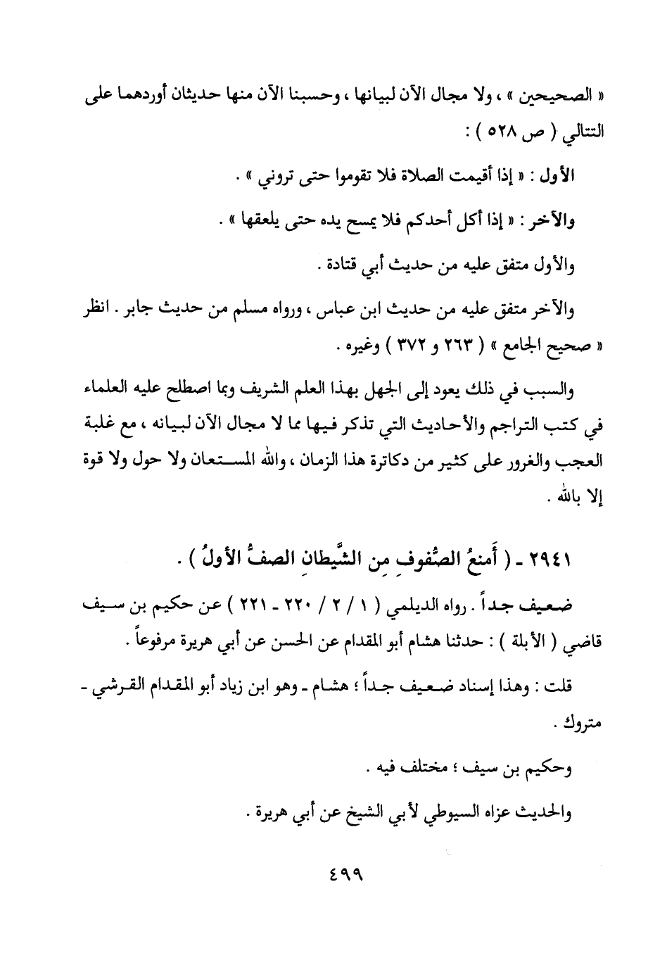 " الصحيحين "، ولا مجال الآن لبيانها، وحسبنا الآن منها حديثان أوردهما على التتالي (ص 528) :
