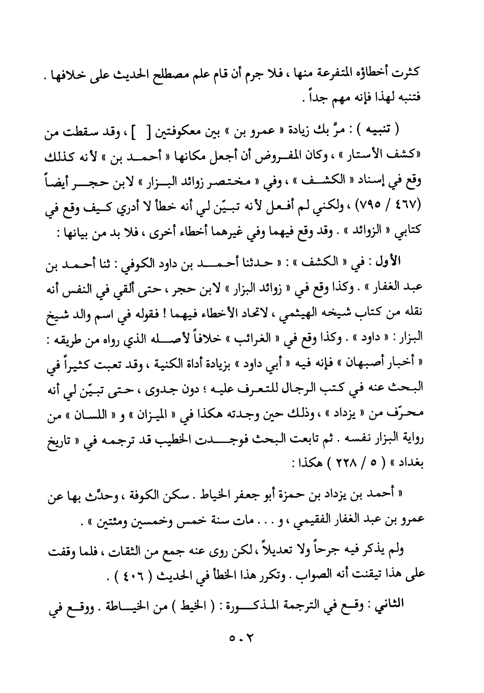 (تنبيه) : مر بك زيادة " عمرو بن " بين معكوفتين [] ، وقد سقطت من " كشف الأستار "، وكان المفروض أن أجعل مكانها " أحمد بن " لأنه كذلك وقع في إسناد " الكشف "، وفي " مختصر زوائد البزار " لابن حجر أيضا (467/795) ، ولكني لم أفعل لأنه تبين لي أنه خطأ لا أدري كيف وقع في كتابي " الزوائد ". وقد وقع فيهما وفي غيرهما أخطاء أخرى، فلابد من بيانها:
