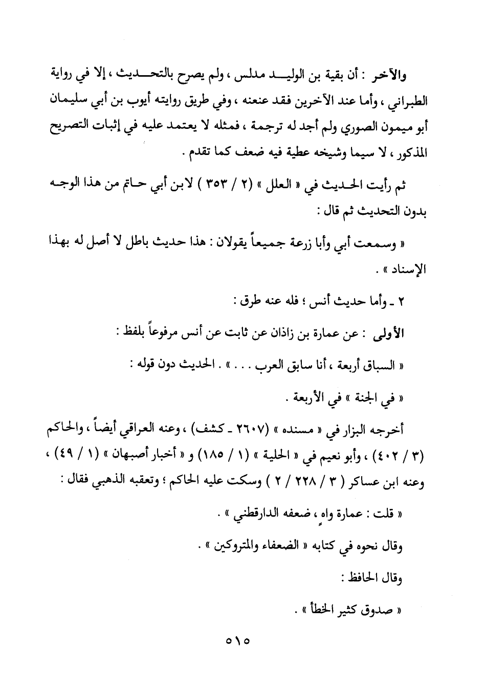 " قلت: عمارة واه، ضعفه الدارقطني ".