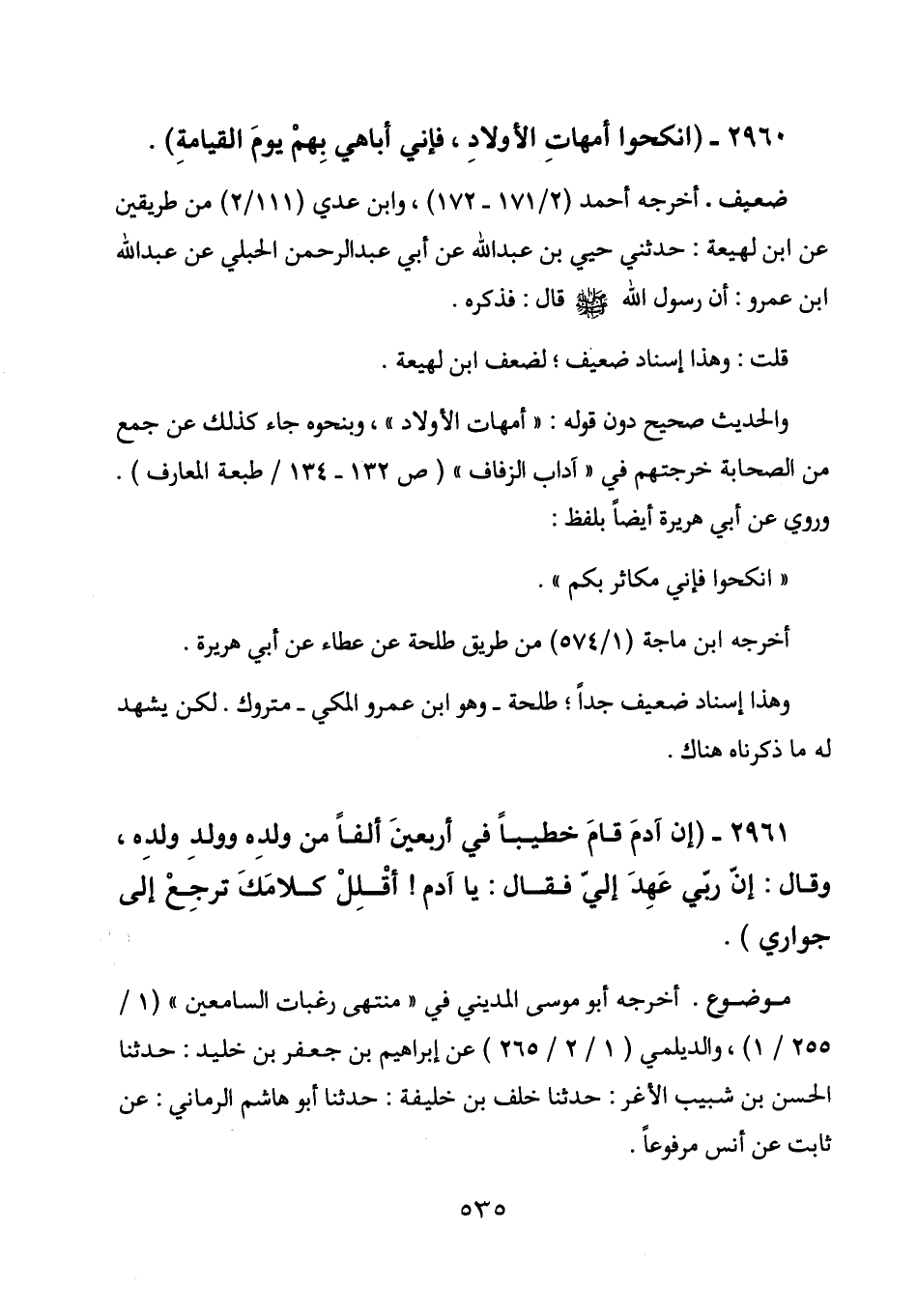 2960 - (انكحوا أمهات الأولاد، فإني أباهي بهم يوم القيامة) .