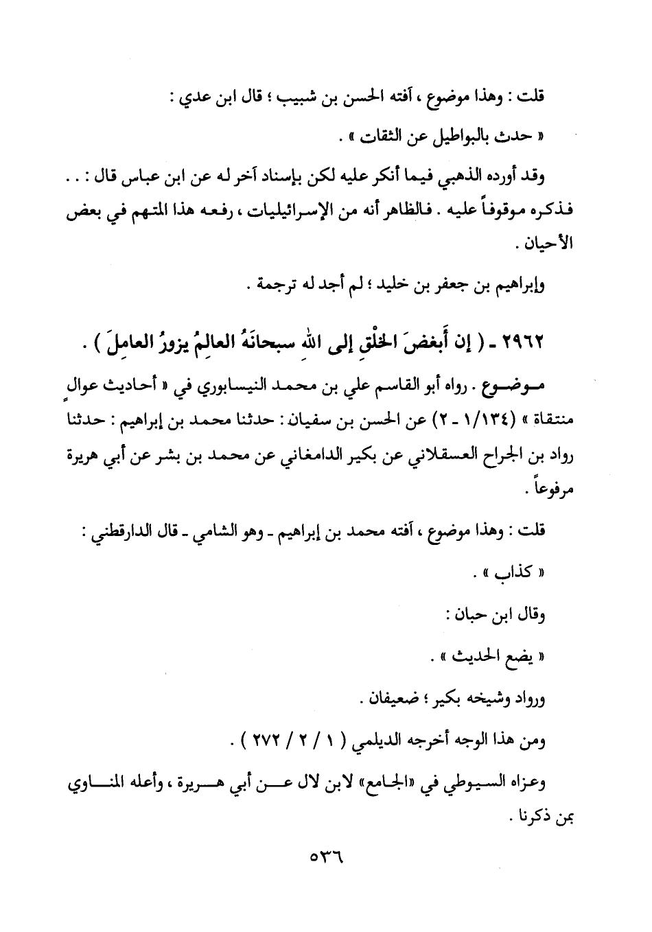 2962 - (إن أبغض الخلق إلى الله سبحانه العالم يزور العامل) .