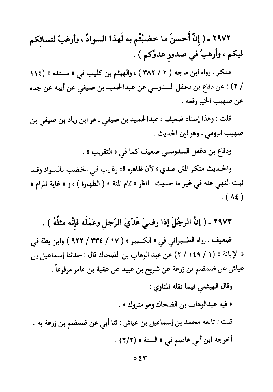 2972 - (إن أحسن ما خضبتم به لهذا السواد، وأرغب لنسائكم فيكم، وأرهب في صدور عدوكم) .