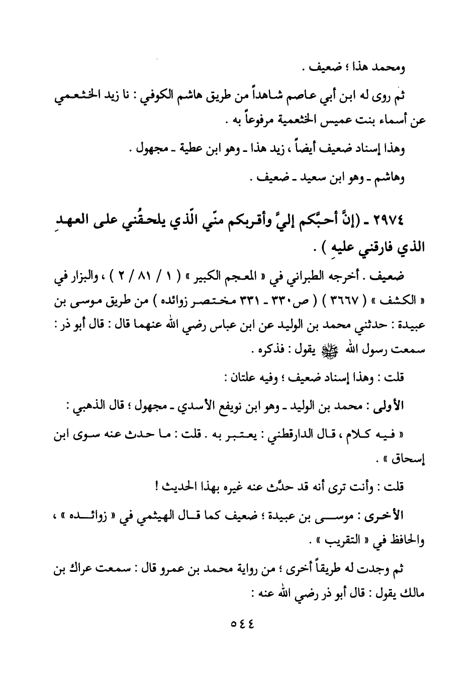 2974 - (إن أحبكم إلي وأقربكم مني الذي يلحقني على العهد الذي فارقني عليه) .
