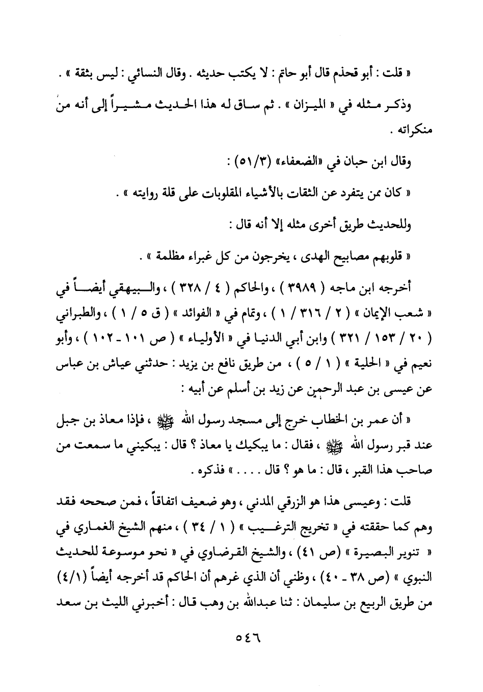 أخرجه ابن ماجه (3989) ، والحاكم (4/328) ، والبيهقي أيضا في " شعب الإيمان " (2316/1) ، وتمام في " الفوائد " (ق 5/1) ، والطبراني (20/153/321) وابن أبي الدنيا في " الأولياء " (ص 101 - 102) ، وأبو نعيم في " الحلية " (1/5) ، من طريق نافع بن يزيد: حدثني عياش بن عباس عن عيسى بن عبد الرحمن عن زيد بن أسلم عن أبيه: