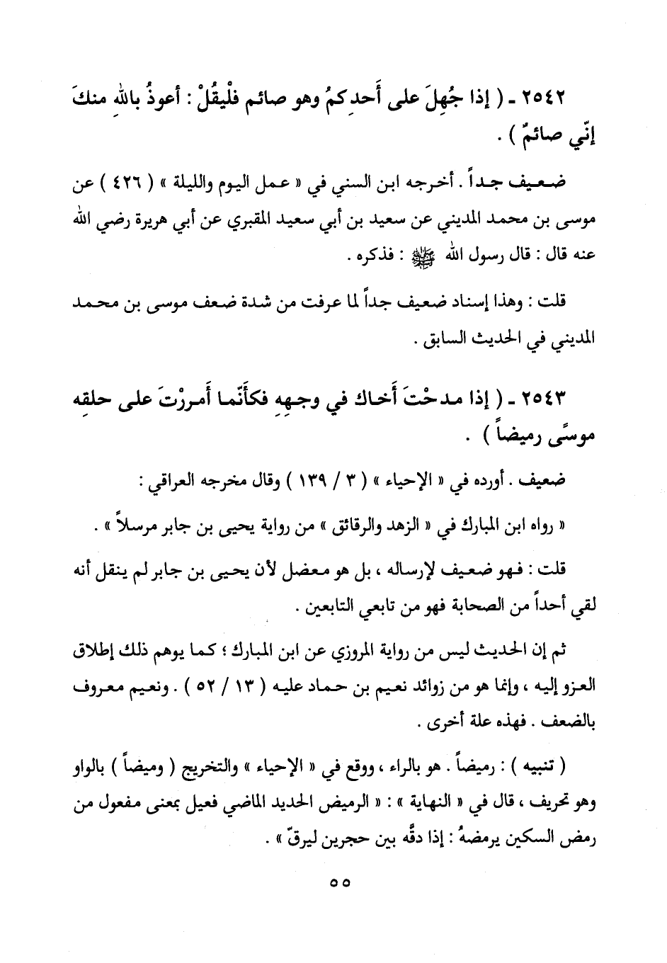 2543 - (إذا مدحت أخاك في وجهه فكأنما أمررت على حلقه موسى رميضا) .