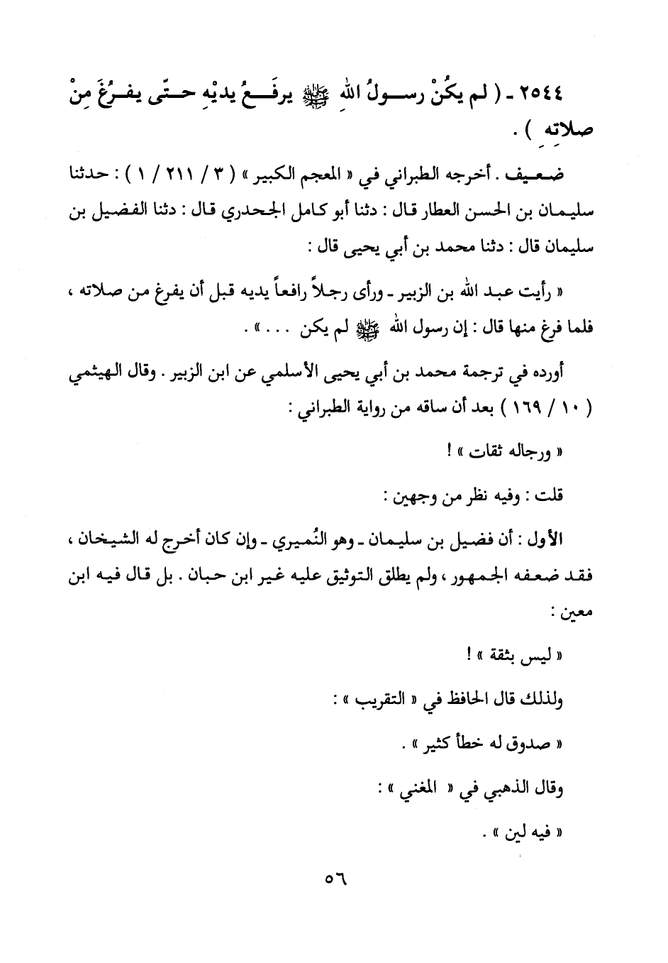 " رأيت عبد الله بن الزبير - ورأى رجلا رافعا يديه قبل أن يفرغ من صلاته، فلما فرغ منها قال: إن رسول الله صلى الله عليه وسلم لم يكن.... ".