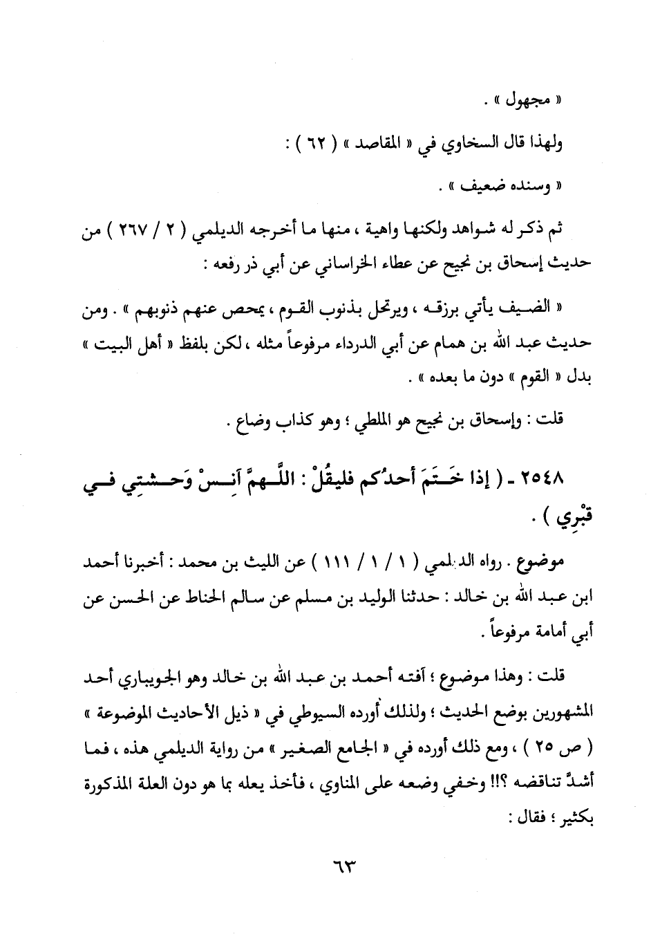 ولهذا قال السخاوي في " المقاصد " (62) :