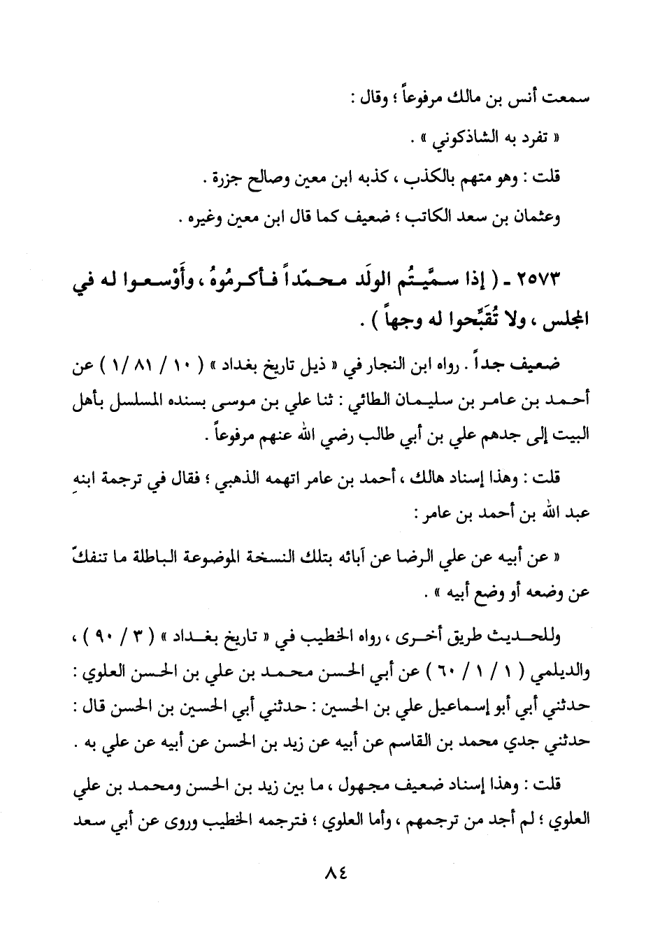 2573 - (إذا سميتم الولد محمدا فأكرموه، وأوسعوا له في المجلس، ولا تقبحوا له وجها) .