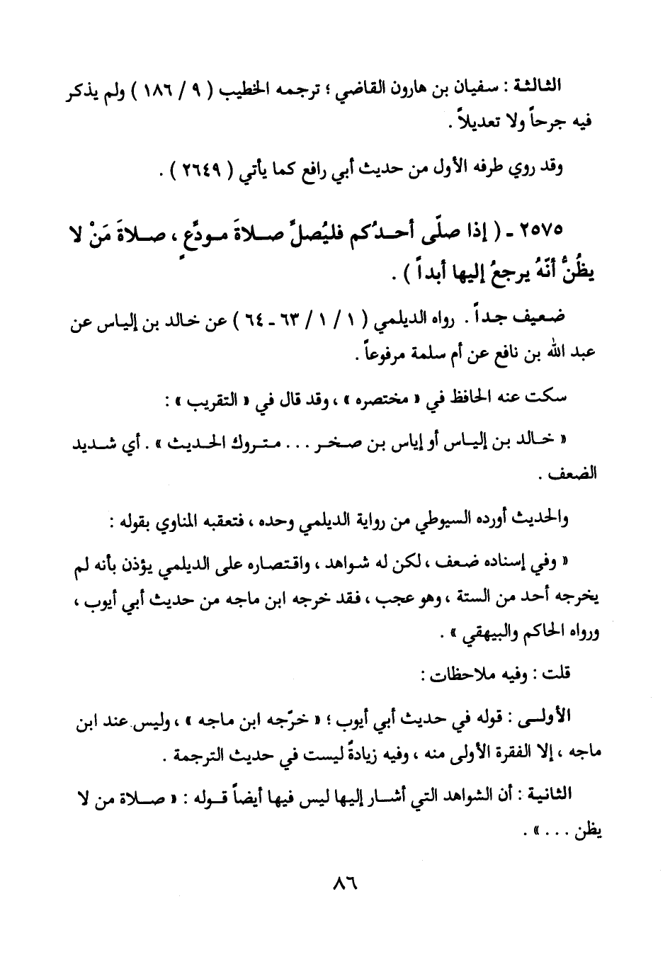 الثانية: أن الشواهد التي أشار إليها ليس فيها أيضا قوله: " صلاة من لا يظن ... ".