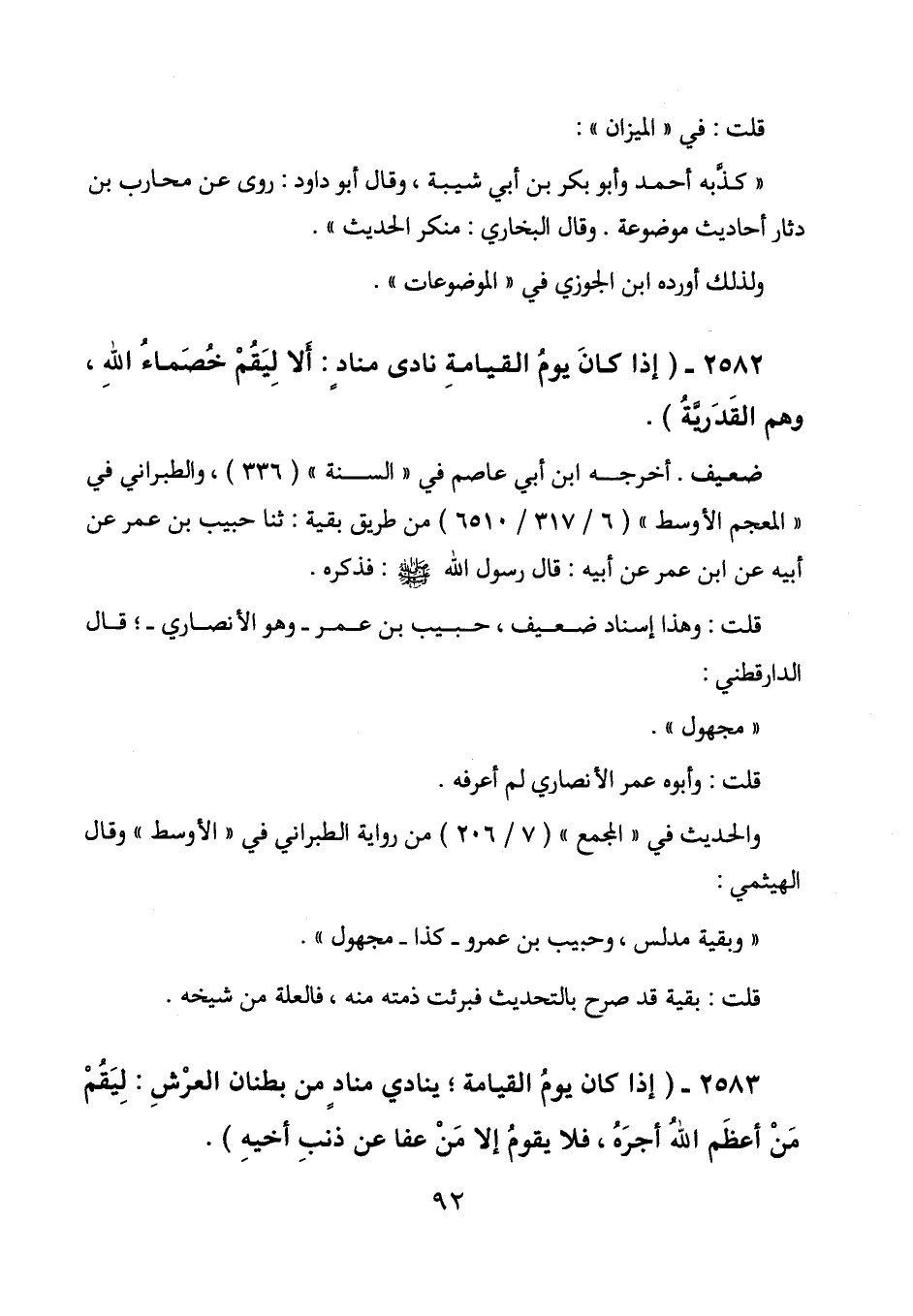 2582 - (إذا كان يوم القيامة نادى مناد: ألا ليقم خصماء الله، وهم القدرية) .