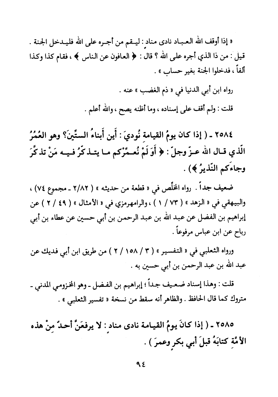 2584 - (إذا كان يوم القيامة نودي: أين أبناء الستين؟ وهو العمر الذي قال الله عز وجل: (أولم نعمركم ما يتذكر فيه من تذكر وجاءكم النذير)) .
