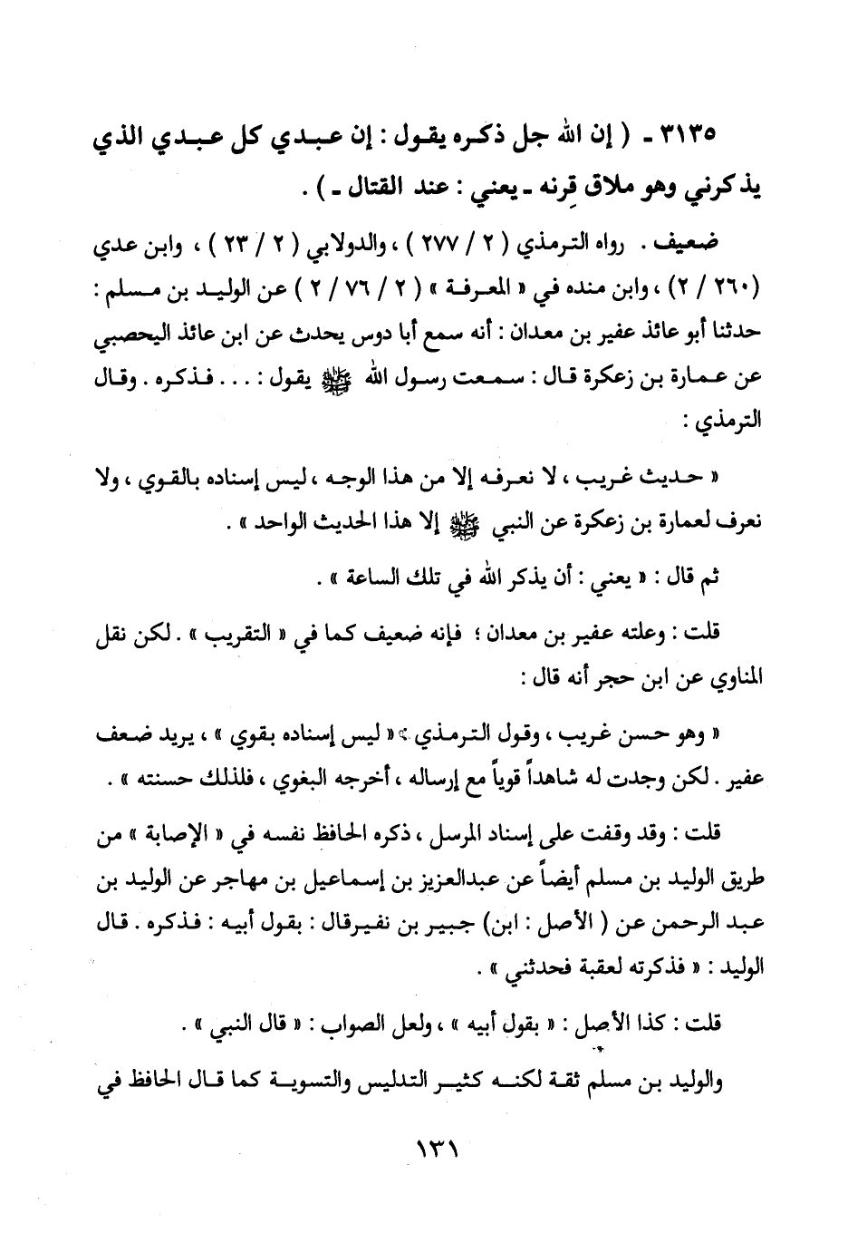 3135 - (إن الله جل ذكره يقول: إن عبد ي كل عبد ي الذي يذكرني وهو ملاق قرنه - يعني: عند القتال -) .