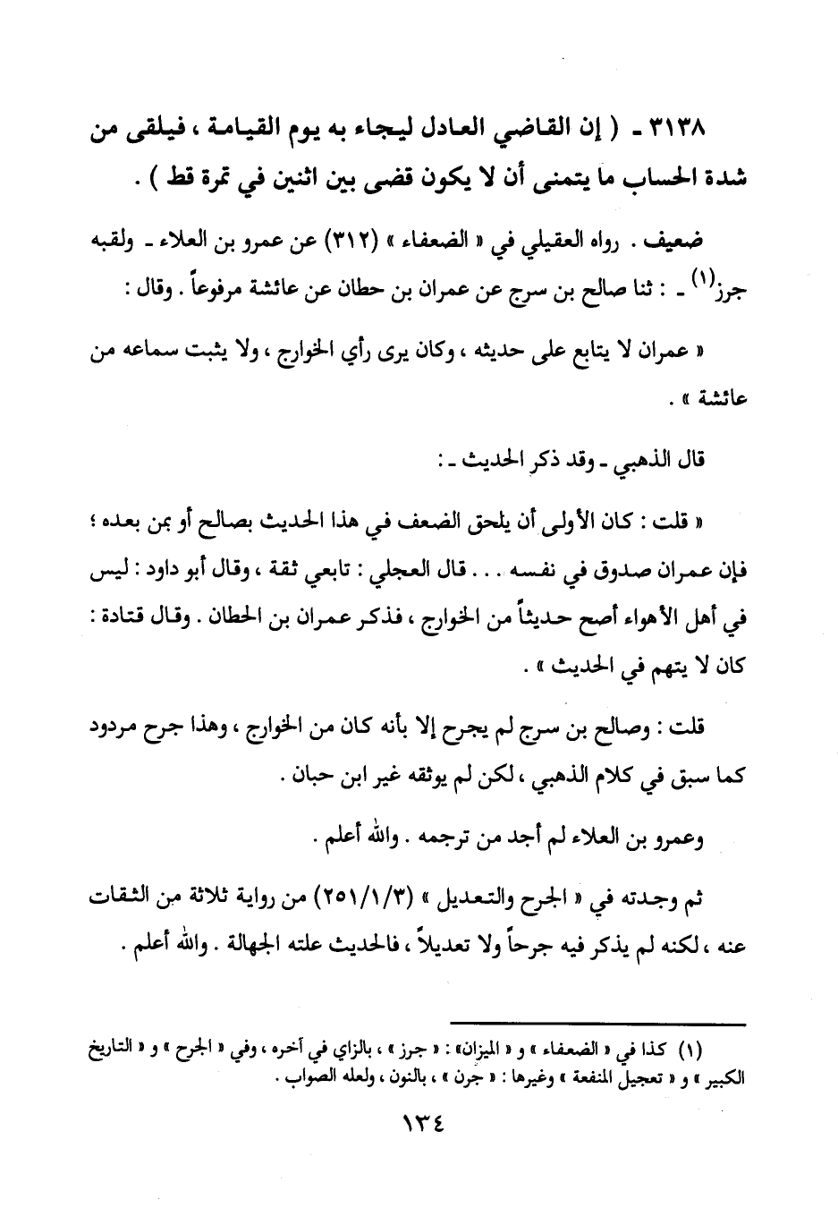 (1) كذا في " الضعفاء " و " الميزان ": جزر بالزاي في آخره، وفي " الجرح " و " التاريخ الكبير " و " تعجيل المنفعة " وغيرها: " جرن " بالنون، ولعله الصواب.