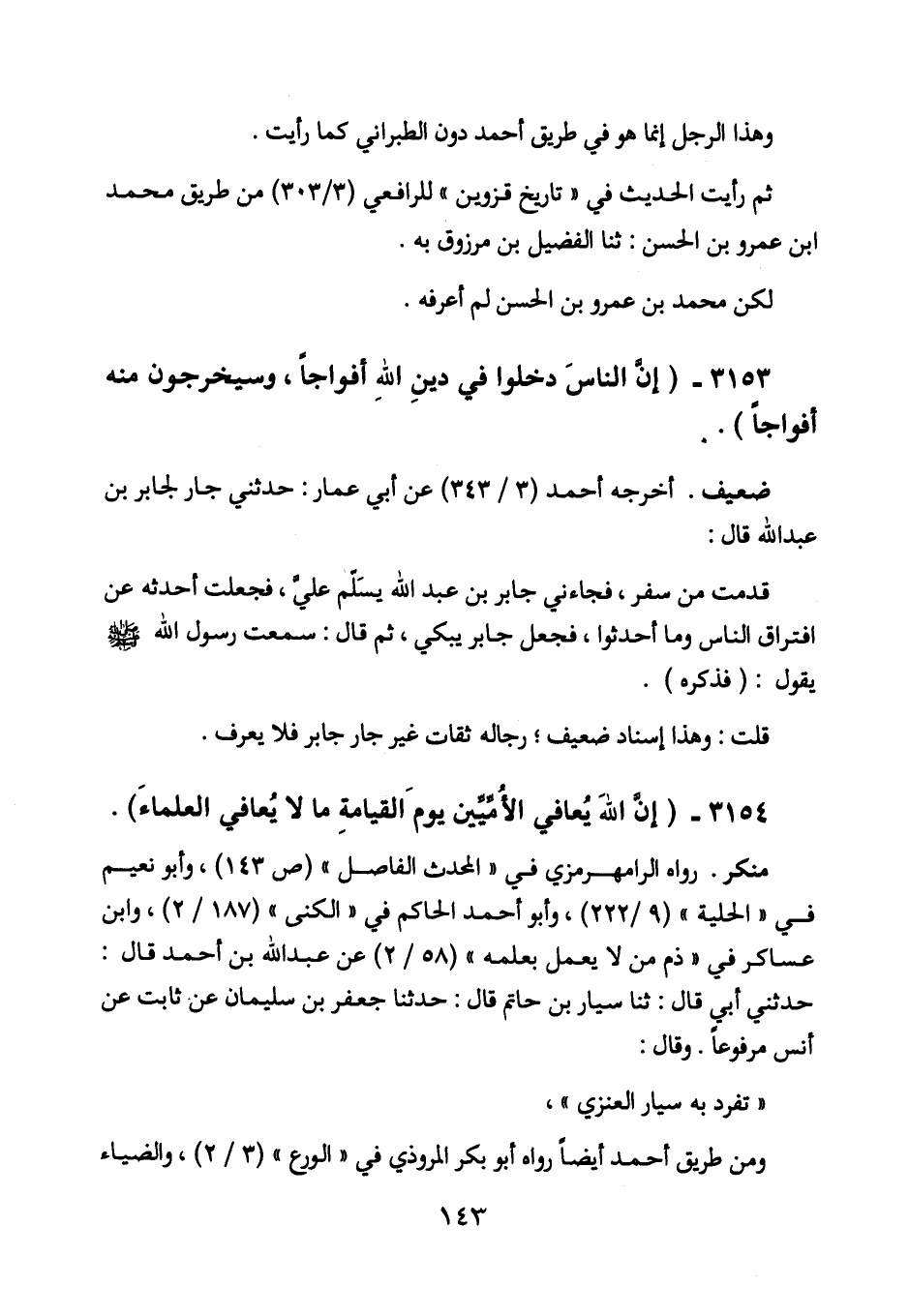 3154 - (إن الله يعافي الأميين يوم القيامة ما لا يعافي العلماء) .
