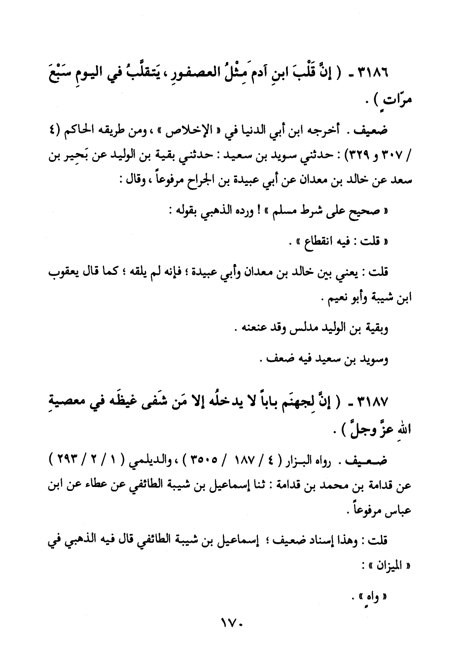 3186 - (إن قلب ابن آدم مثل العصفور، يتقلب في اليوم سبع مرات) .