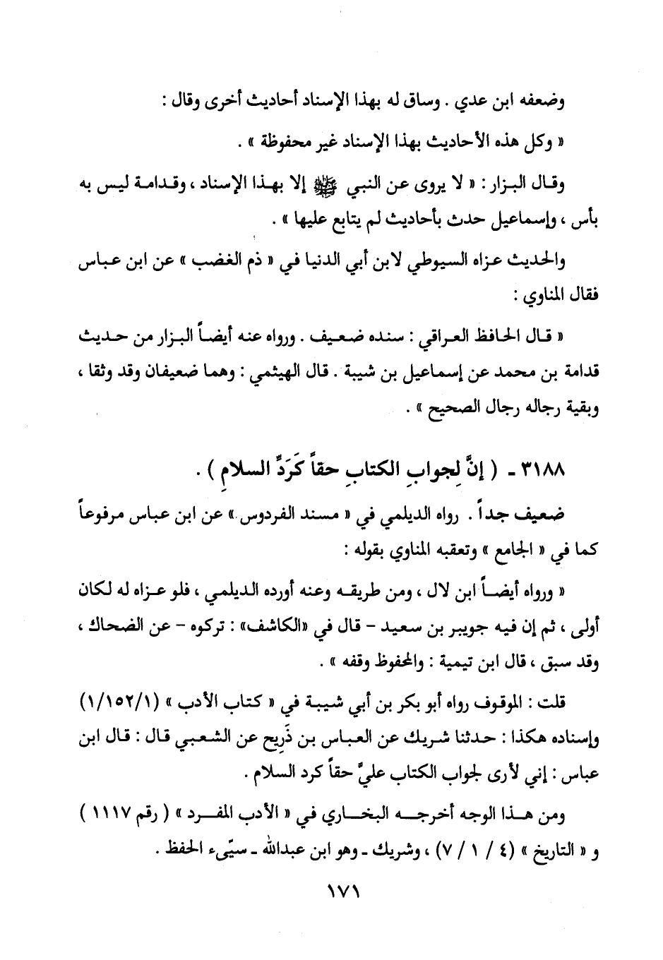 3188 - (إن لجواب الكتاب حقاً كرد السلام) .