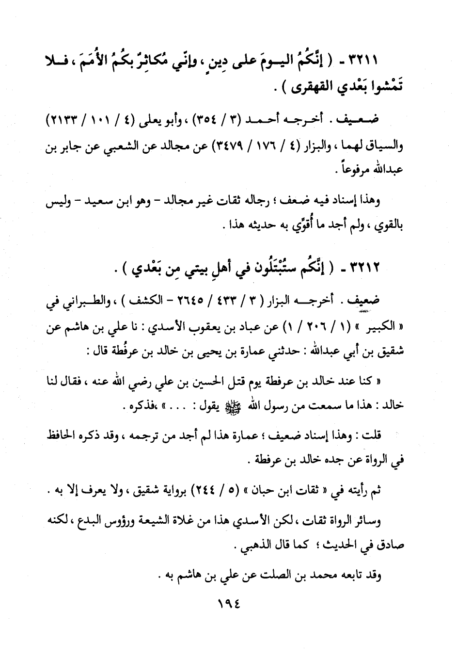3212 - (إنكم ستبتلون في أهل بيتي من بعدي) .