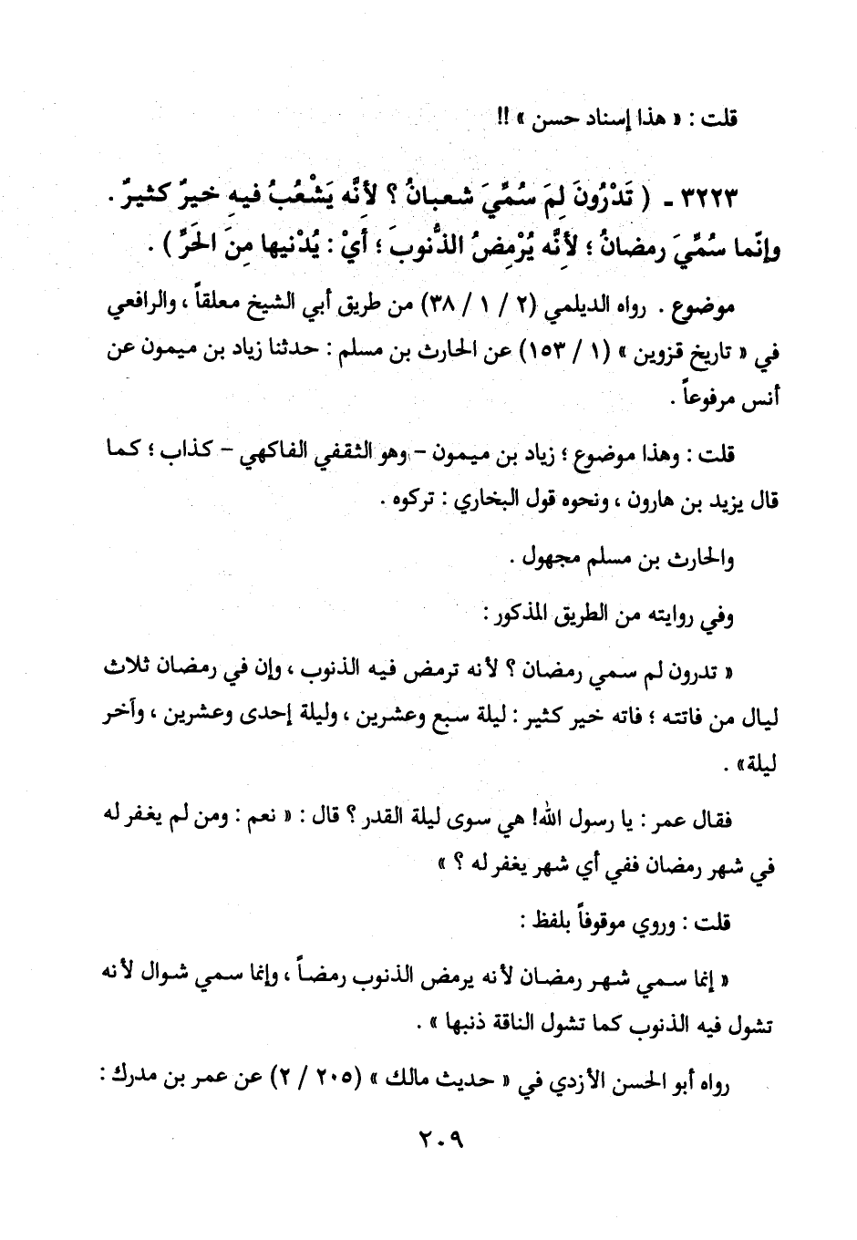 3223 - (تدرون لم سمي شعبان؟ لأنه يشعب فيه خير كثير. وإنما سمي رمضان؛ لأنه يرمض الذنوب؛ أي: يدنيها من الحر) .