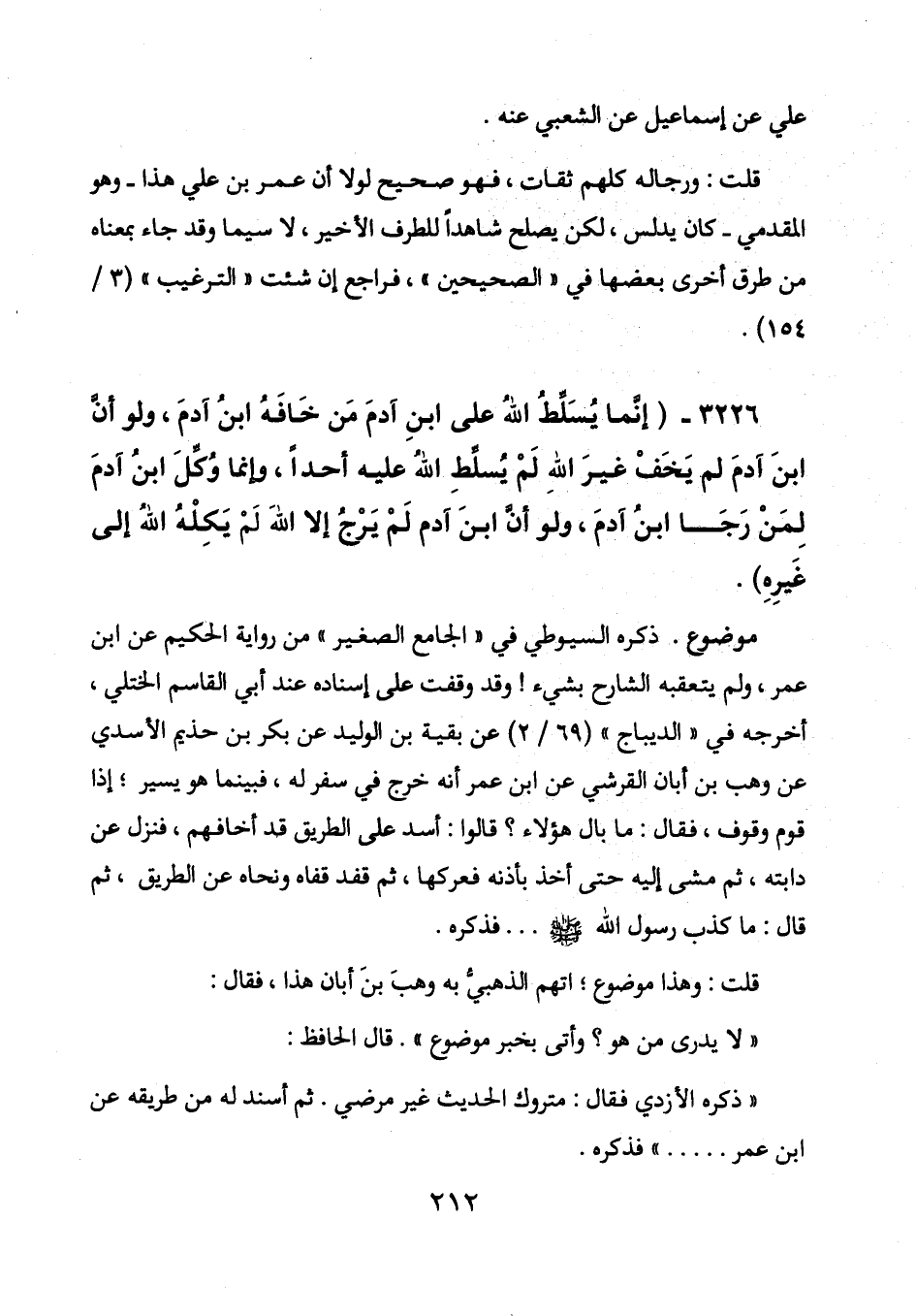 3226 - (إنما يسلط الله على ابن آدم من خافه ابن آدم، ولو أن ابن آدم لم يخف غير الله لم يسلط الله عليه أحداً، وإنما وكل ابن آدم لمن رجا ابن آدم، ولو أن ابن آدم لم يرج إلا الله لم يكله الله إلى غيره) .