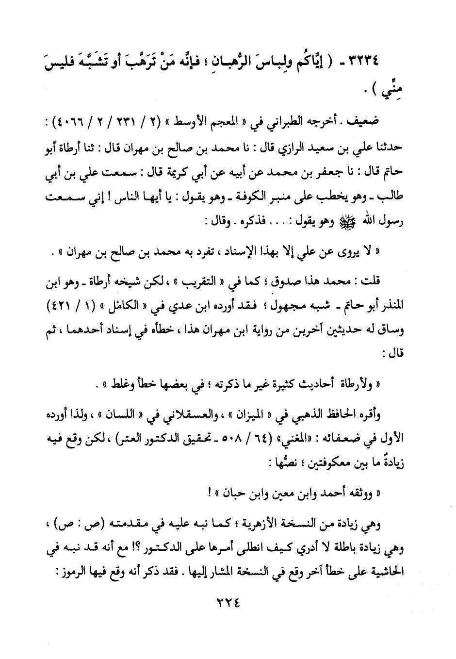 قلت: محمد هذا صدوق؛ كما في "التقريب"، لكن شيخه أرطاة - وهو ابن المنذر أبو حاتم - شبه مجهول؛ فقد أورده ابن عدي في "الكامل" (1/ 421) وساق له حديثين آخرين من رواية ابن مهران هذا، خطأه في إسناد أحدهما، ثم قال: