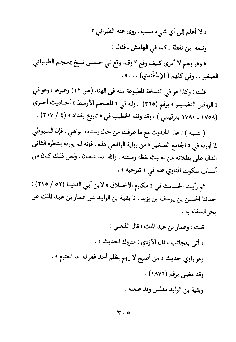 قلت: وكذا هو في النسخة المطبوعة منه في الهند (ص12) وغيرها، وهو في "الروض النضير" برقم (365) . وله في "المعجم الأوسط" أحاديث أخرى (1758-1780بترقيمي) ، وقد وثقه الخطيب في "تاريخ بغداد" (4/ 307) .