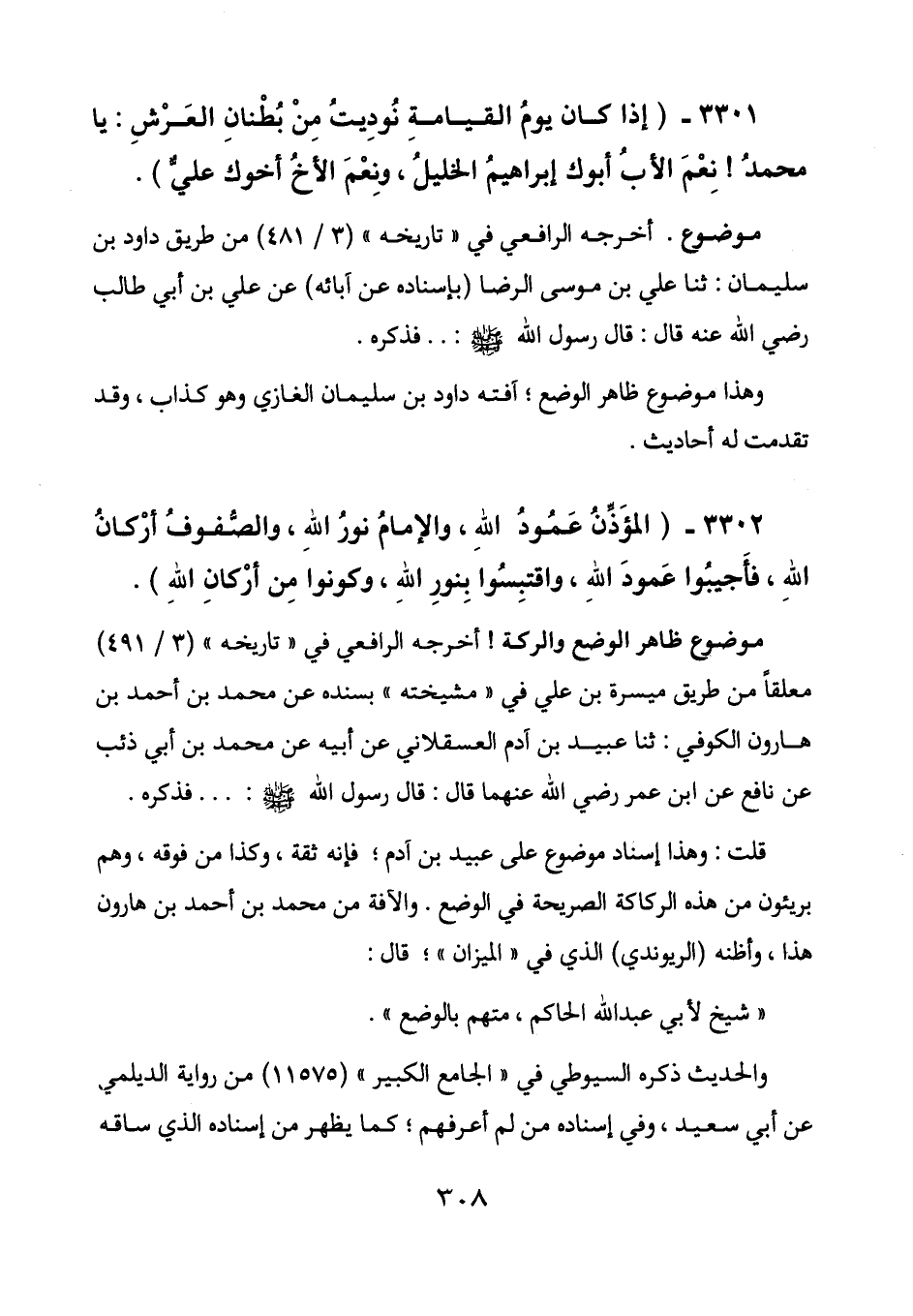 3301 - (إذا كان يوم القيامة نوديت من بطنان العرش: يا محمد! نعم الأب أبوك إبراهيم الخليل، ونعم الأخ أخوك علي) .