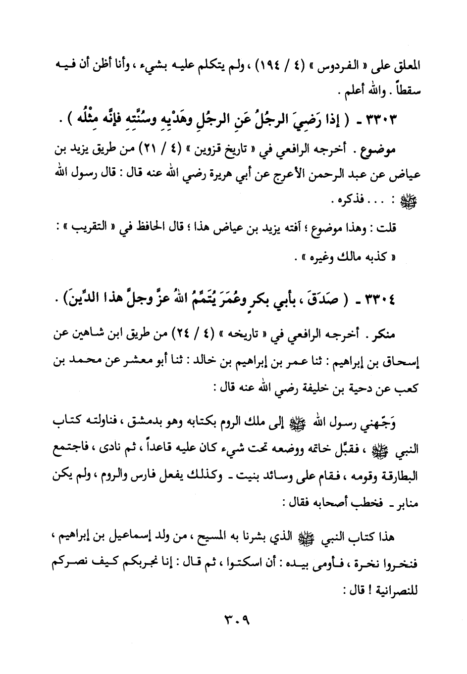 3304 - (صدق، بأبي بكر وعمر يتمم الله عز وجل هذا الدين) .