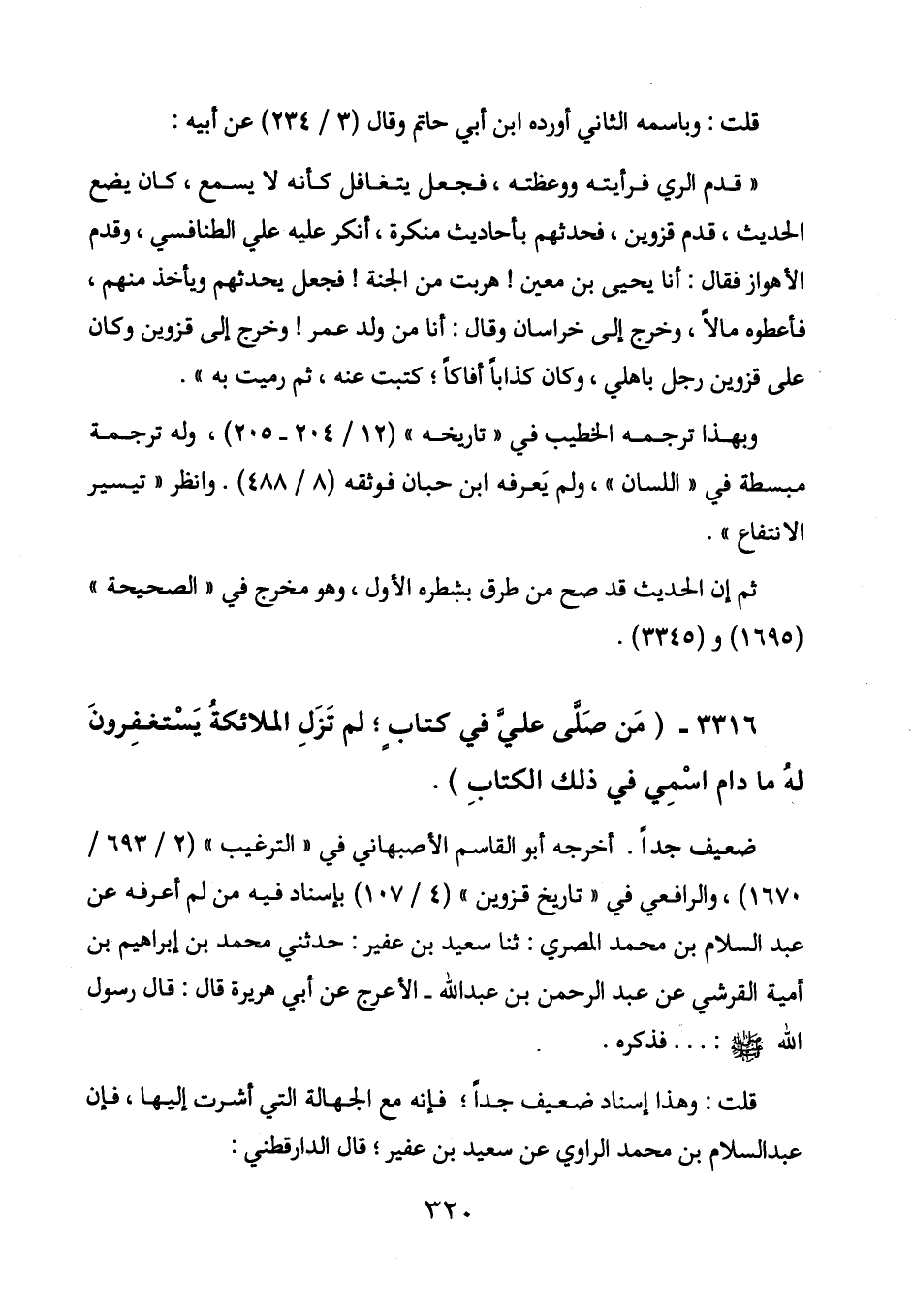 3316 - (من صلى علي في كتاب؛ لم تزل الملائكة يستغفرون له ما دام اسمي في ذلك الكتاب) .